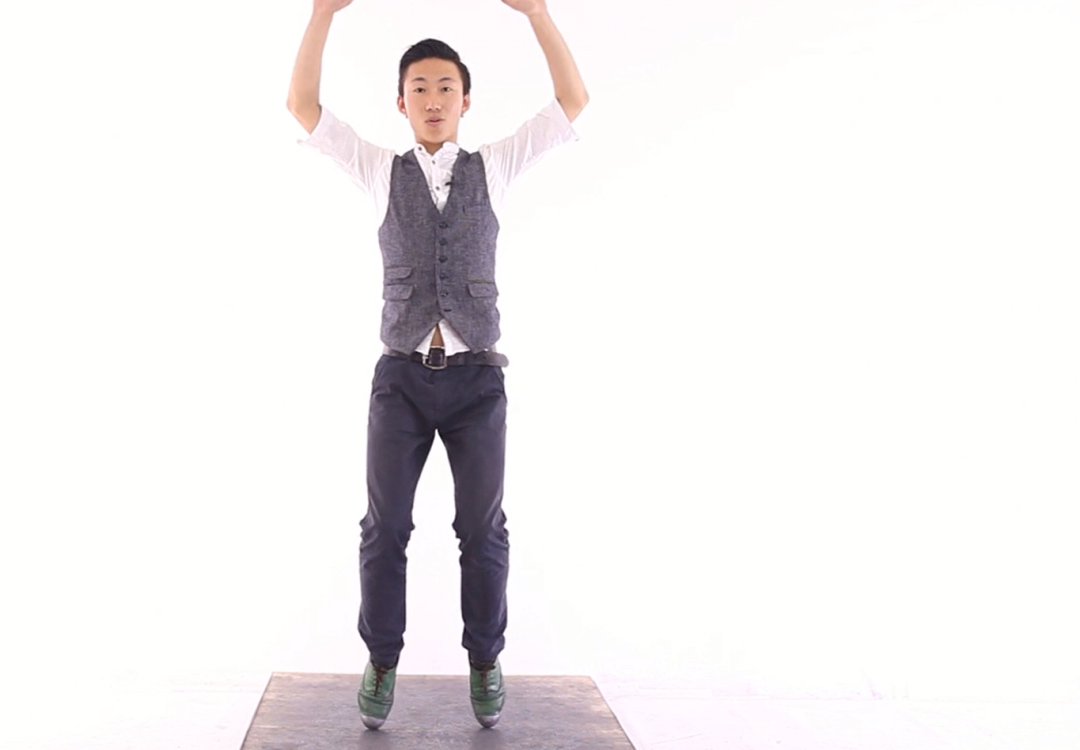 在做hop的时候,因为动作难度较大,所以需要一些技巧,我们应将腹部收紧,手臂举起维持平衡,会使舞步表现得很轻盈。