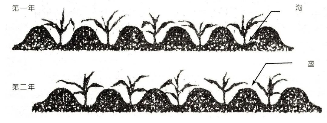 这样,整块地就变成了一条沟、一道土埂相间隔的格局。
