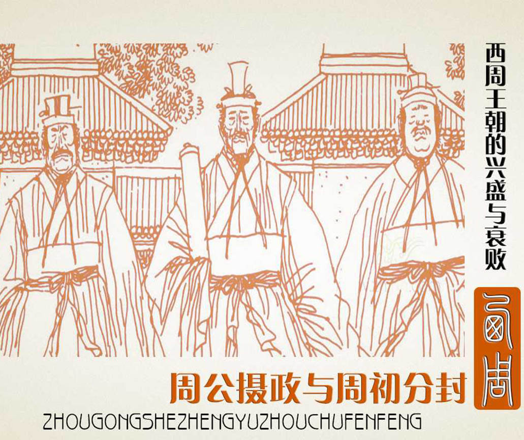 周武王去世后,其子继位,是为成王。成王年幼,因此由周公摄政。周公摄政后,调大军东征,用三年时间平定了武庚与管叔、蔡叔之乱。之后,周公又营建了洛邑(今河南洛阳),制礼作乐,成为西周典章制度的主要创制者。他主张 “明德慎罚”,以“礼”治国,为“成康之治”奠定了基础。