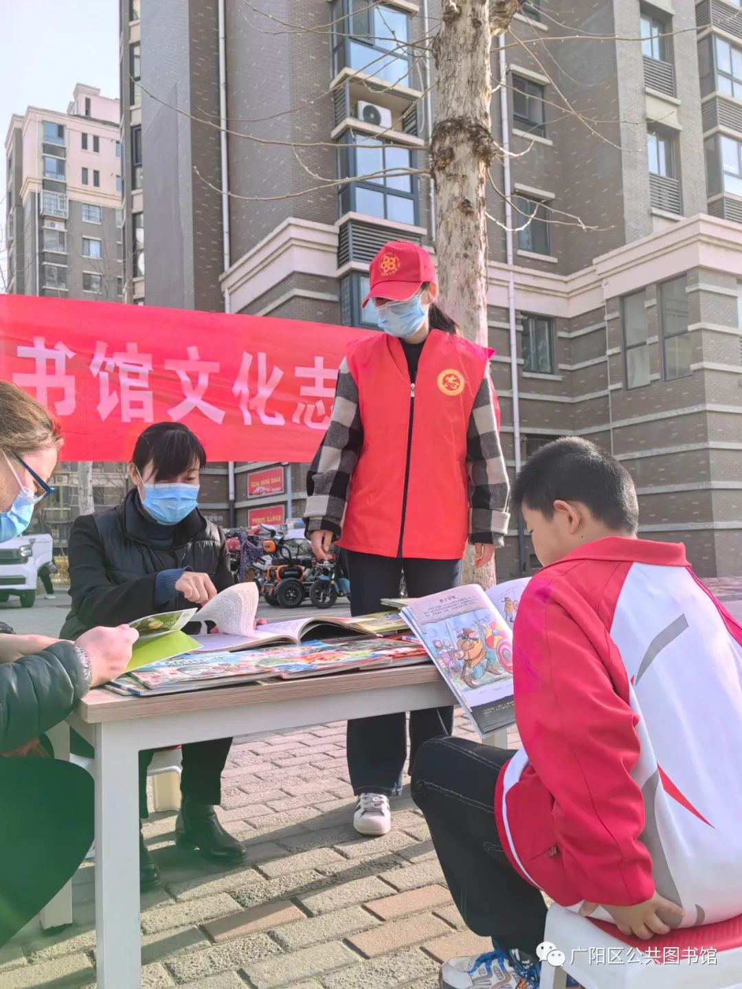 广阳区图书馆的工作人员,在活动现场开展文化志愿服务,为各年龄段读者提供现场阅读指导和疑难解答。