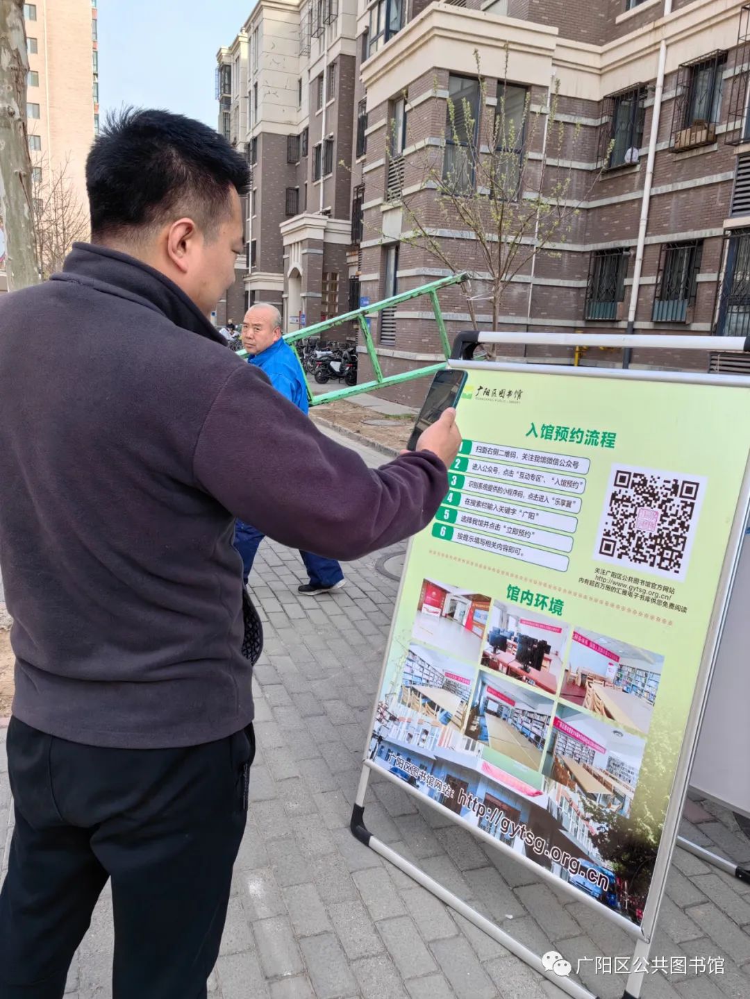 本年度流动阅读服务的第一站放在爱民东道办事处逸树家小区。三月的广阳,春寒料峭,下午三点半,广阳区图书馆的老师们将图书车徐徐开进逸树家小区,在逸锦家苑社区居委会和小区物业工作人员的积极配合与帮助下,公益阅读进基层活动于下午四时准时开始。
