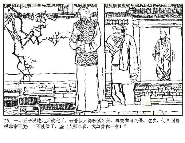 连环画《丰收》改编自其创作的短篇小说《丰收》与《火》,揭示了农民如果想摆脱地主的剥削和压迫,就只有在共产党的领导下组织起来,进行斗争。