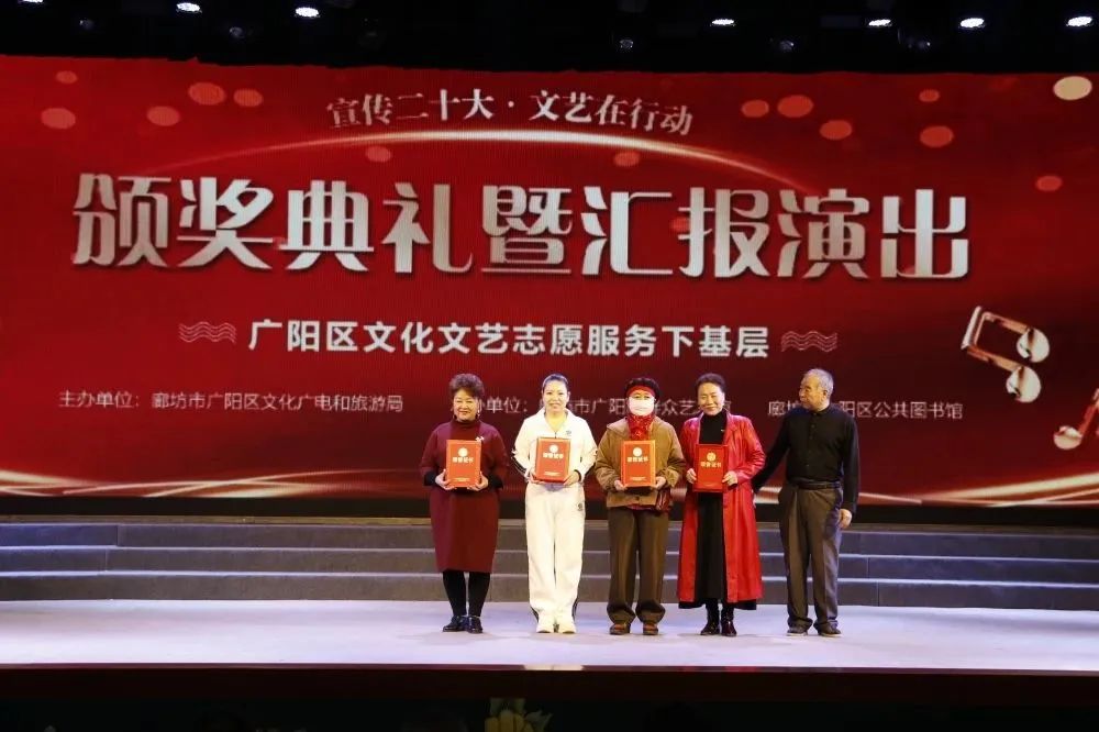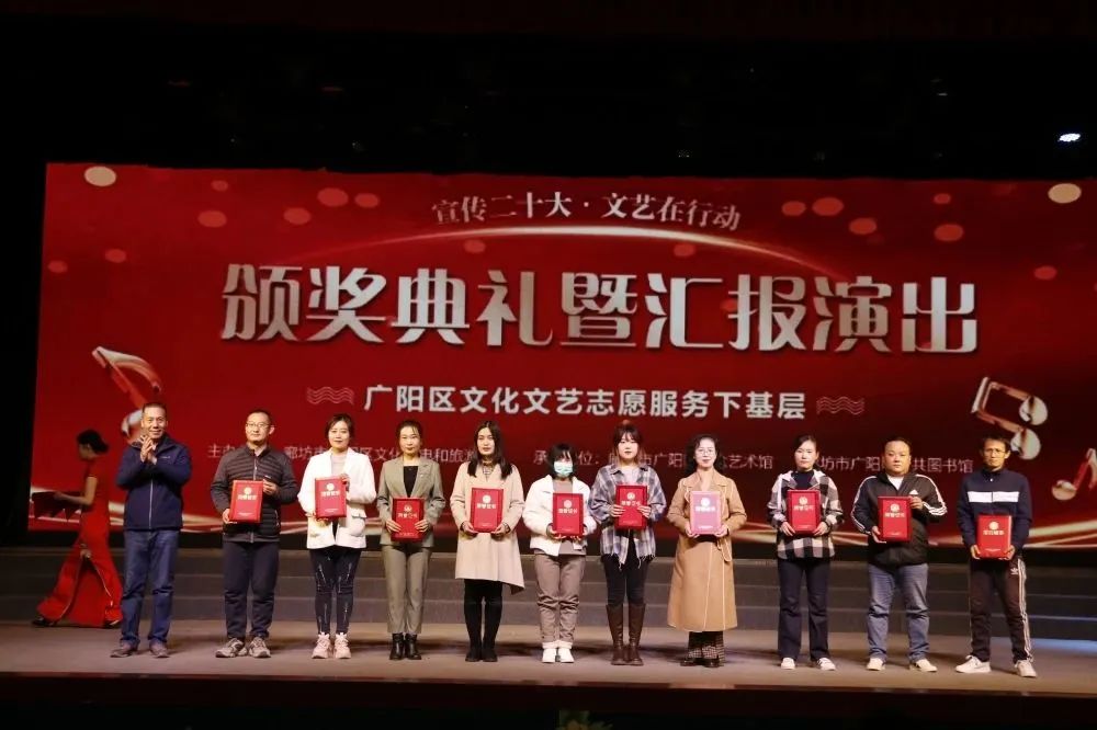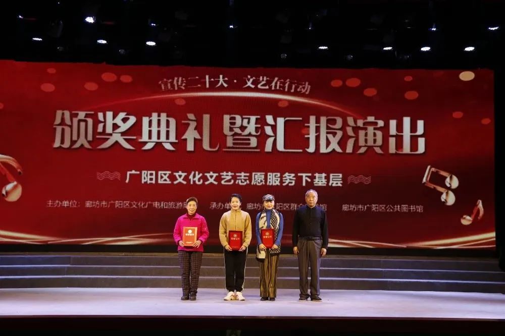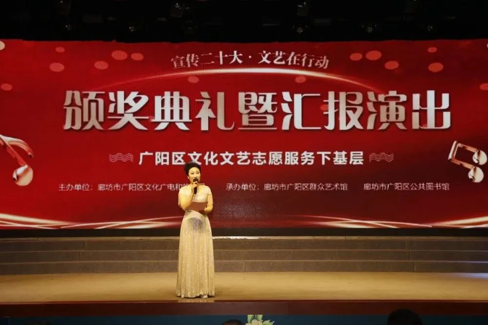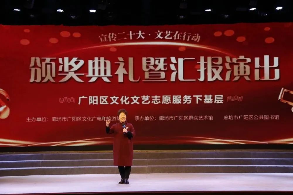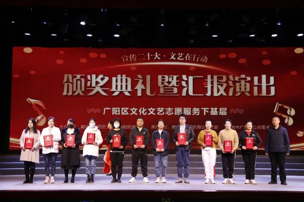 3月,花开次第春潮涌,最好人间杨柳风。25日,历时四个多月的廊坊市广阳区“宣传二十大 文艺在行动——文化文艺志愿服务下基层”活动迎来了颁奖典礼暨汇报演出。