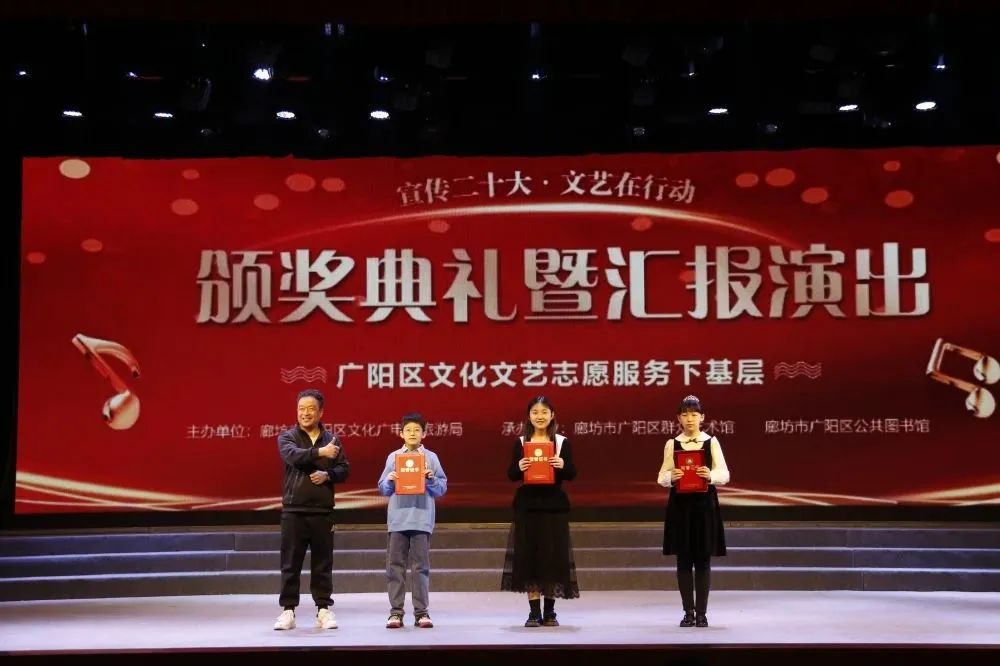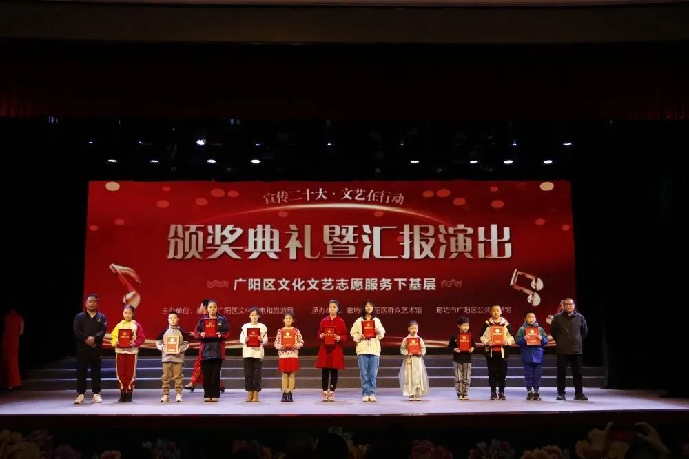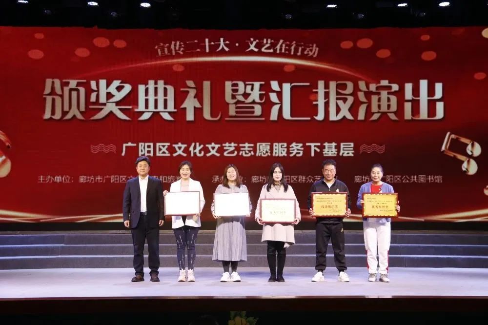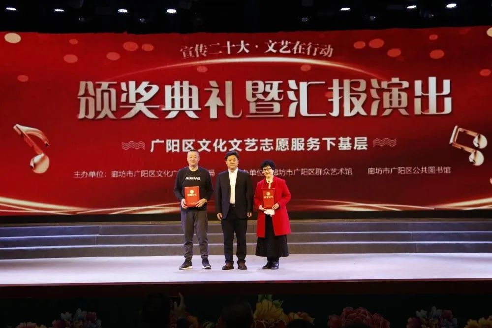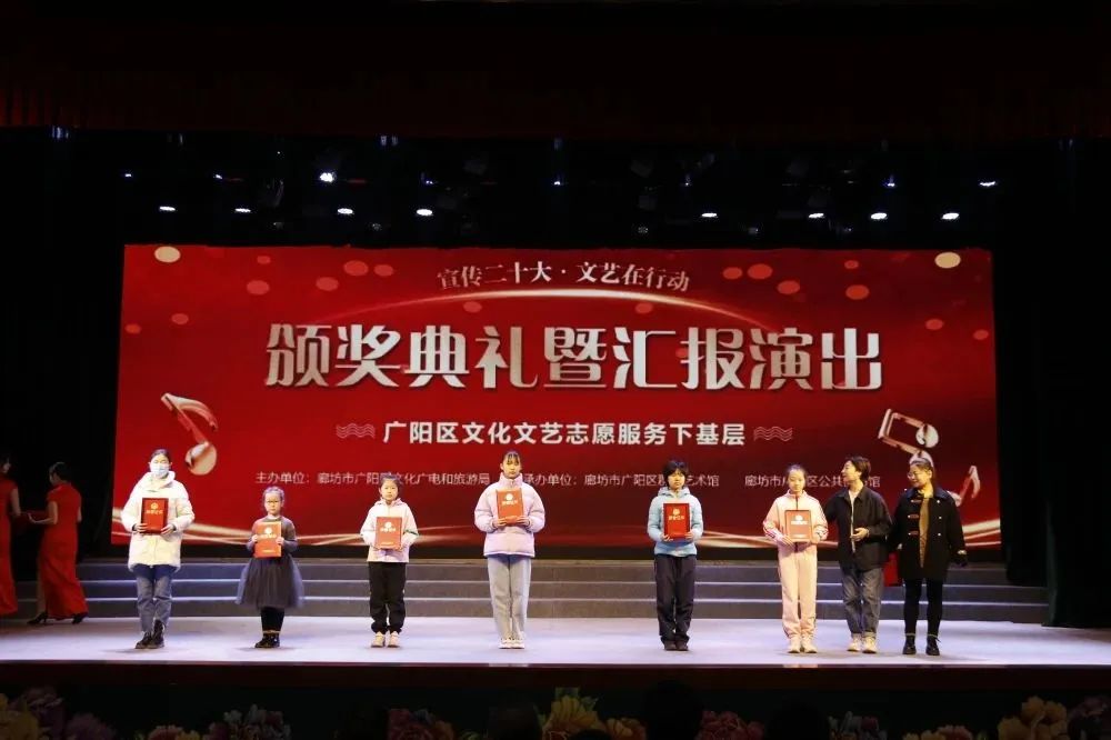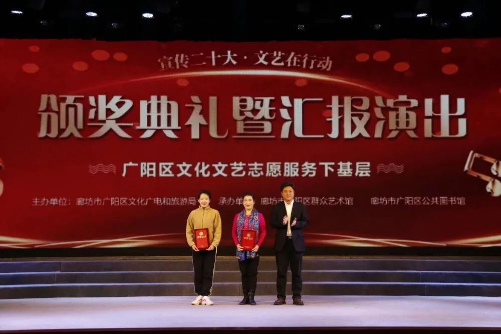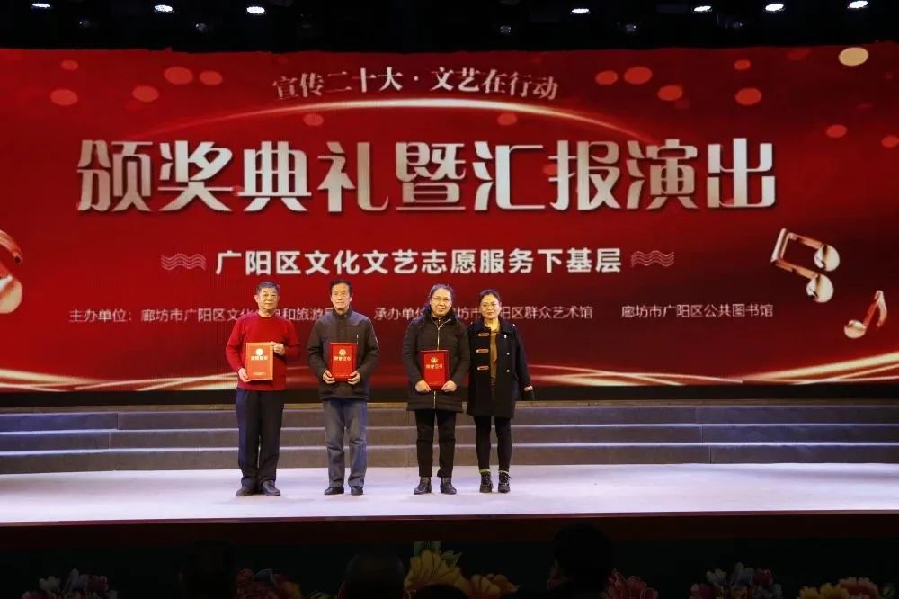 3月,花开次第春潮涌,最好人间杨柳风。25日,历时四个多月的廊坊市广阳区“宣传二十大 文艺在行动——文化文艺志愿服务下基层”活动迎来了颁奖典礼暨汇报演出。