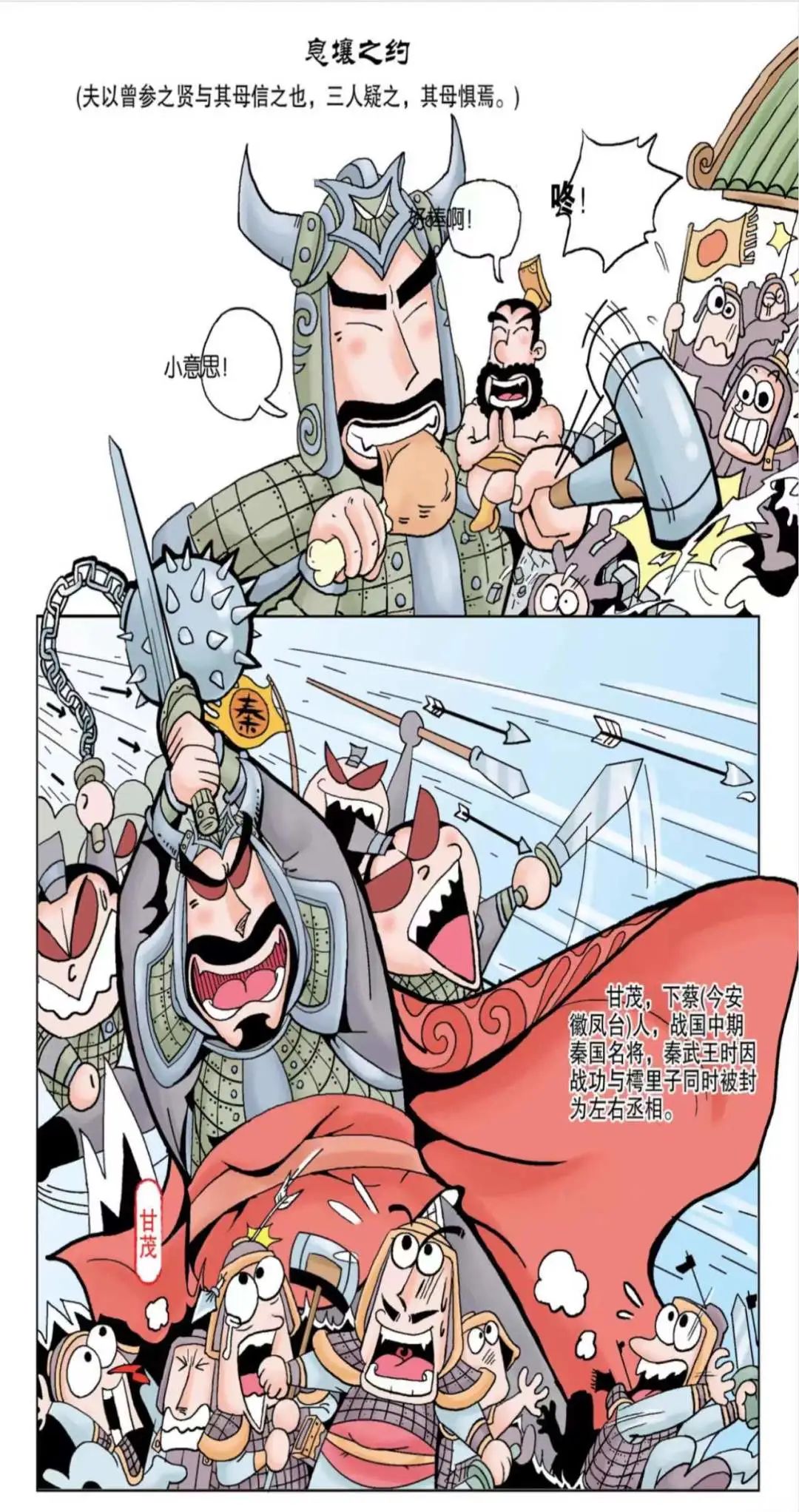 当秦武王见到甘茂时问道:“当初你是非常积极地赞成去攻打韩国的,而且你还很主动地担负起了说服魏王出兵的重任,现在一切都准备好了,你又为何改变主意了呢?”甘茂没有直接回答秦武王的问话,而是对秦武王说:“大王,您是不是听说过孔子的学生曾参的一个故事?”秦武王不明白甘茂是什么意思,只好摇了摇头说:“我不知道你说的是什么样的故事。”甘茂说:“那我就给大王讲一讲这个故事。听了这个故事之后,大王也许就明白其中的道理了,怎么样呢?”秦武王只好说:“那就请丞相讲一讲吧。”甘茂说道:“孔子有一个学生名叫曾参。有一次,有一个和他同名同姓的人在外面闯了祸,不清楚的人以为是他闯了祸。于是就去告诉他的母亲,说她儿子在外面杀了人。她母亲因为相信自己的孩子,所以没有听信别人的话,过了一会儿,又有一个人来告诉她说她儿子闯了祸,这位母亲还是没有相信,可是,当第三个人来告诉她说是她儿子闯了祸,现在官府正准备到她家来抓人时,曾参的母亲终于相信了,吓得躲了起来。”秦武王听了这个故事之后,还是不明白地问:“左丞相说的这个故事和我们攻打韩国有什么关系呢?”甘茂叹了一口气说:“大王,我们去攻打韩国不是一天两天的事。这场战争也许会打好几个月,甚至更长的时间。如果这中间发生什么变故的话,那我们今天的努力就全白费了。”秦武王说:“有你主持这次战争,怎么可能发生变故呢?你考虑得太多了吧。”甘茂回答说:“大王,您要知道,我离开京城去攻打韩国,如果一时半会儿打不下来,朝廷里一定会有人说我的坏话,而大王要是像曾参的母亲一样听信了别人的话,那我的后果就会很悲惨,而大王想统一天下的事业也会受到很大的损失,这让我很为难呀!”秦武王一听,立刻明白甘茂的意思了,于是他就对甘茂说:“你放心,我一定不会去听信别人说的坏话,如果你怕我做不到,我就写下一个契约作为证据好了,这样你就可以放心地去攻打韩国了吧?”说完,秦武王果然写了一个约定,并将这个约定藏在了息壤这个地方。甘茂这才放心地带兵前去攻打韩国。