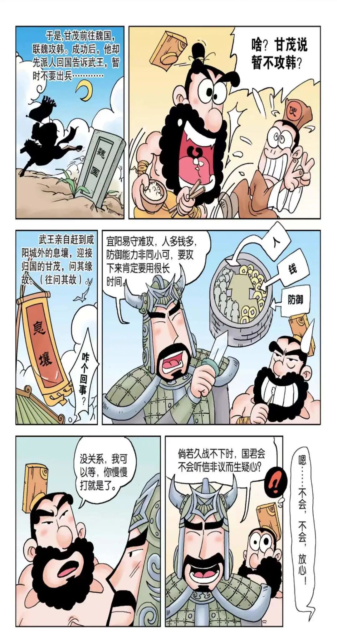 甘茂说服魏王之后,却派人回来向秦武王报告说:“我已经说服魏王同意出兵了,但是我们可不可以改变主意,不要攻打韩国了。”秦武王很奇怪,不明白甘茂是什么意思,于是就亲自到甘茂所住的地方息壤来问个明白。