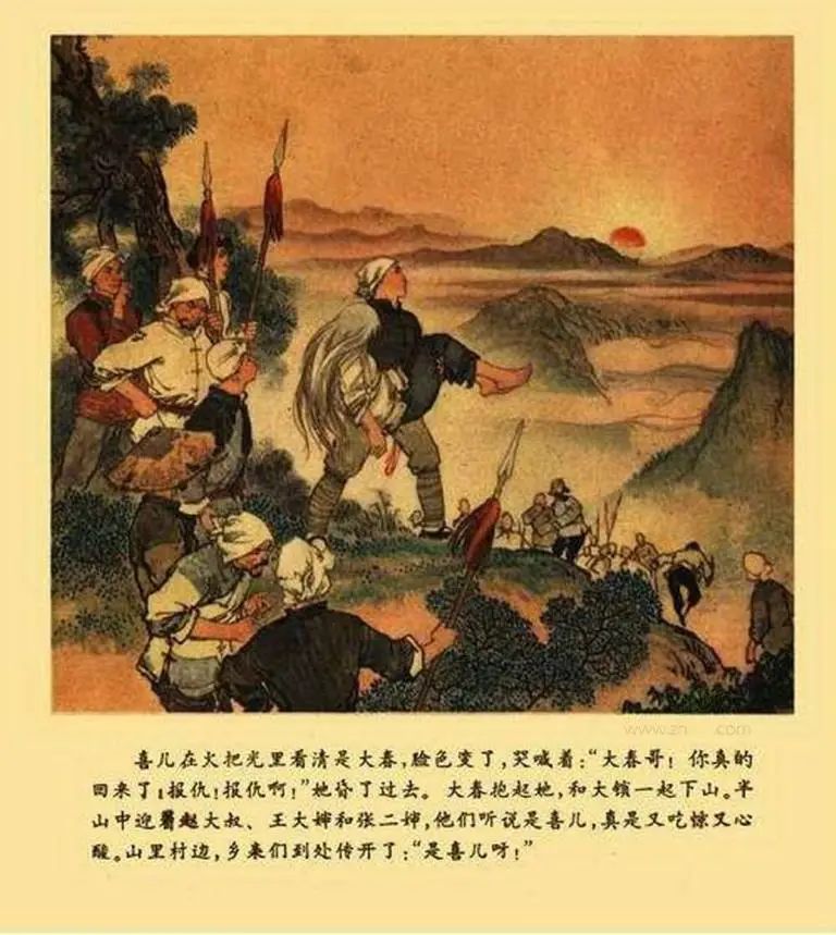 解放前的华北农村,贫农杨白劳和女儿喜儿相依为命。汉奸恶霸黄世仁上门逼债,杨白劳含冤而死,喜儿也被抢走。青年王大春满怀仇恨,投奔了八路军。喜儿逃离虎口,躲进深山。旧恨新仇、风霜雨雪使喜儿的头发变白了,她报仇雪恨的意志却更加坚定。终于有一天,八路军解放了杨各庄,汉奸恶霸受到了应有的惩罚,喜儿重获自由。