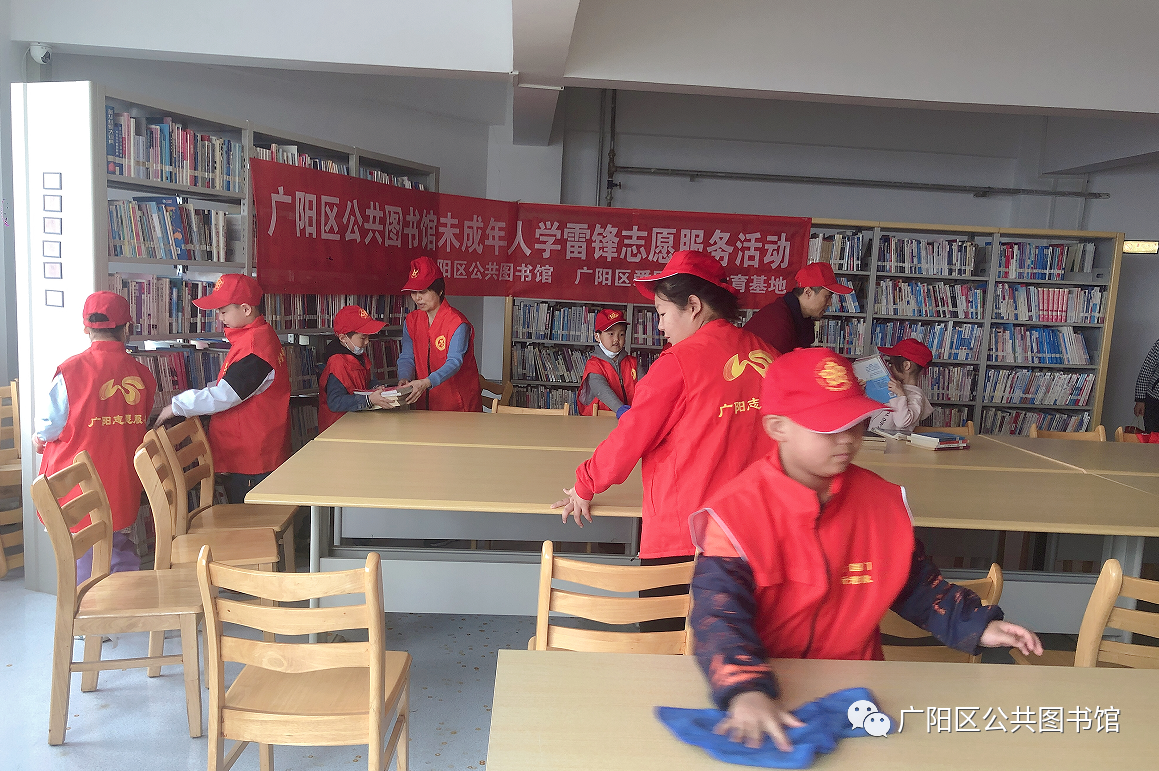 4月2日,我馆开展未成年人志愿服务活动,由小读者组成的志愿服务队在馆内整理图书、打扫卫生。