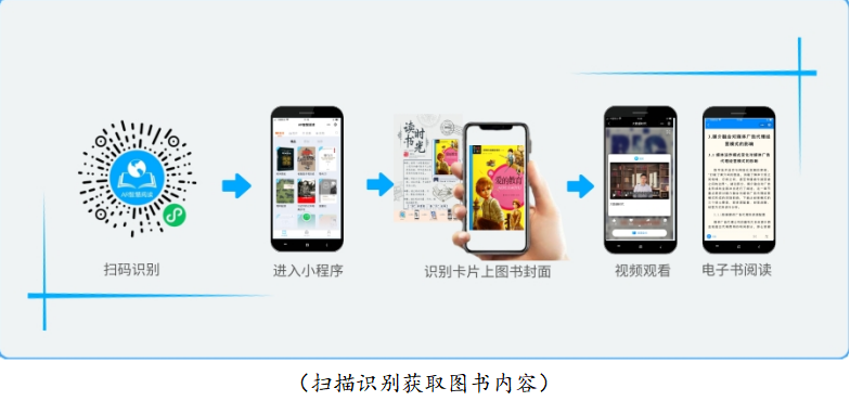 a. 识:读者在活动展示区域任意选择一张图书卡片,使用“AR智慧阅读”小程序扫描识别卡片上的图书封面,即可获取此本图书所有相关内容。