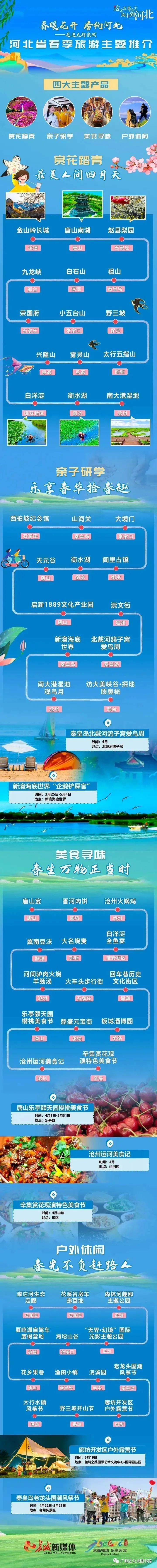 为加快推动河北文旅市场恢复振兴,河北省文化和旅游厅大力开展旅游品质提升专项行动,搭建“乐游京津冀一卡通”平台,联合省交通厅出台旅游包车周末通行河北高速免费政策。以“春暖花开香约河北”为主题,组织全省各地谋划举办82项春季旅游营销宣传活动,设计推出《河北春季花海踏青日历》及28条精品线路,统筹全省近300家景区、酒店推出门票减免、套餐打折等超值优惠,为春游河北提供多样化选择和多重便利,让“这么近、那么美,周末到河北”成为新时尚。