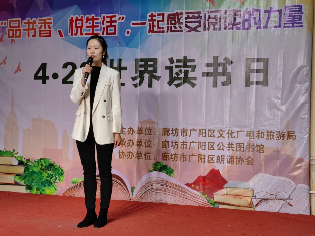 在第 28个“世界读书日”到来之际,4月22日,广阳区文化广电和旅游局主办了主题为“品书香、悦生活”的读书沙龙活动。此次活动由广阳区公共图书馆承办、广阳区朗诵协会协办。
