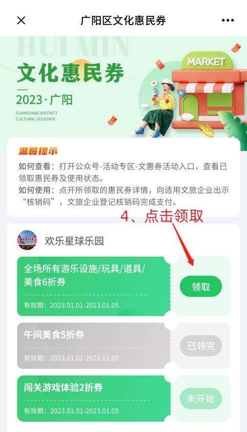 每种惠民券每人可免费领取4张
