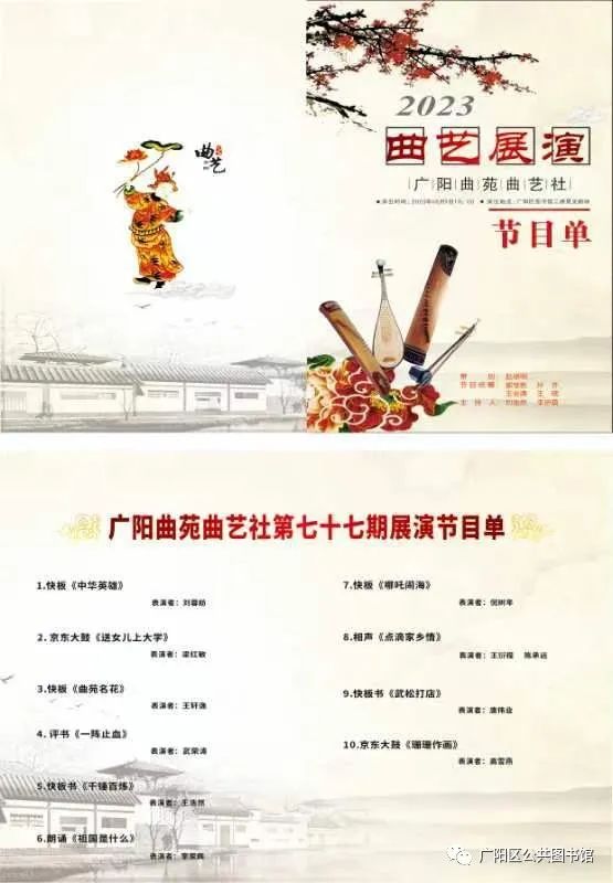 一期展演,一次磨炼;阵阵掌声,鼓舞人心。广大曲艺爱好者在这个舞台磨炼技艺,积累舞台经验,互相切磋,共同成长,收获一颗颗艺术果实。广阳曲苑曲艺社就像传统文化的一朵浪花,以飞扬的舞姿、欢快的风采,舞蹈于时代的潮流中。