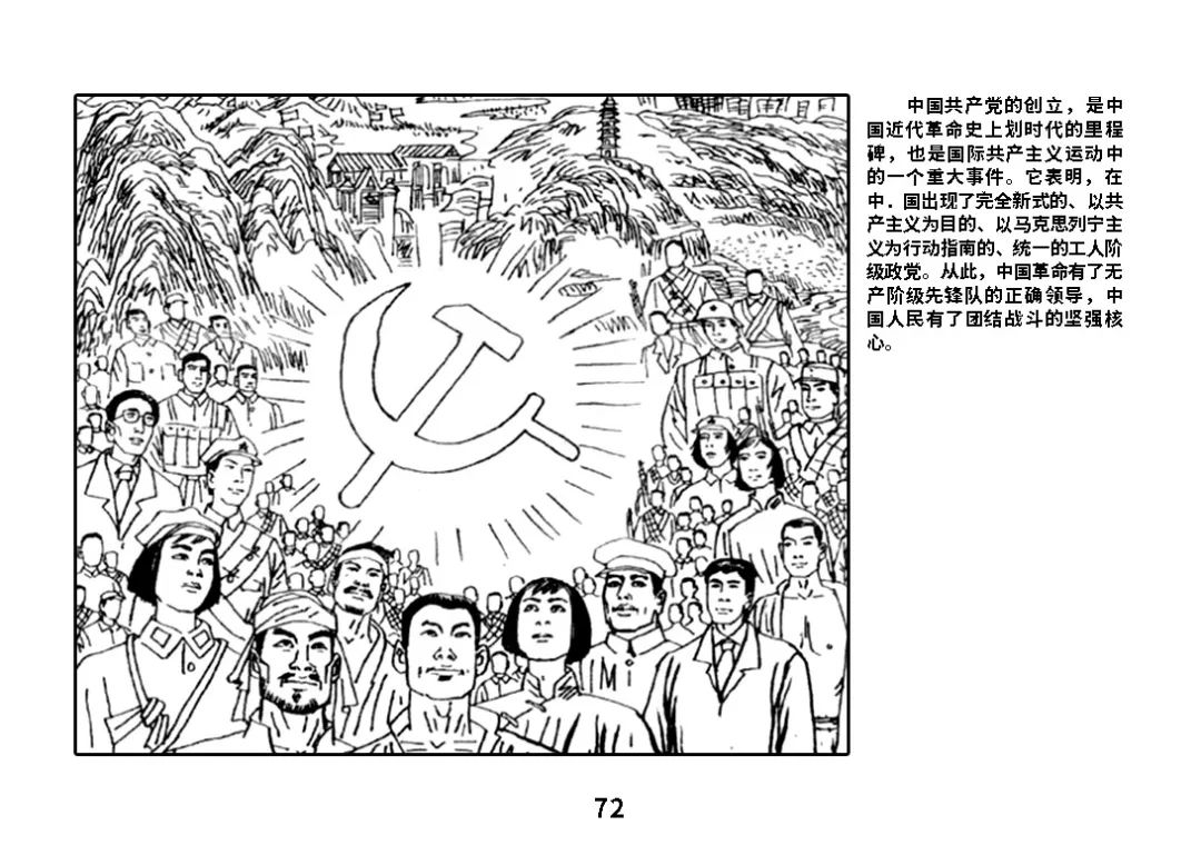 连环画《中国共产党的诞生》通过回顾从五四运动到中共一大的历史进程,以典型人物和重要事件为中心,再现了中国共产党诞生的具体过程,揭示了其背后隐藏的历史必然性,彰显了“坚持真理、坚守理想,践行初心、担当使命,不怕牺牲、英勇斗争,对党忠诚、不负人民”的伟大建党精神。