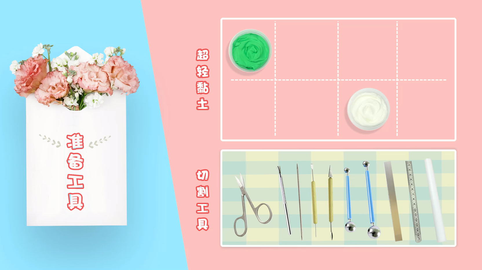 准备剪刀、直尺、小圆管、小勺等工具