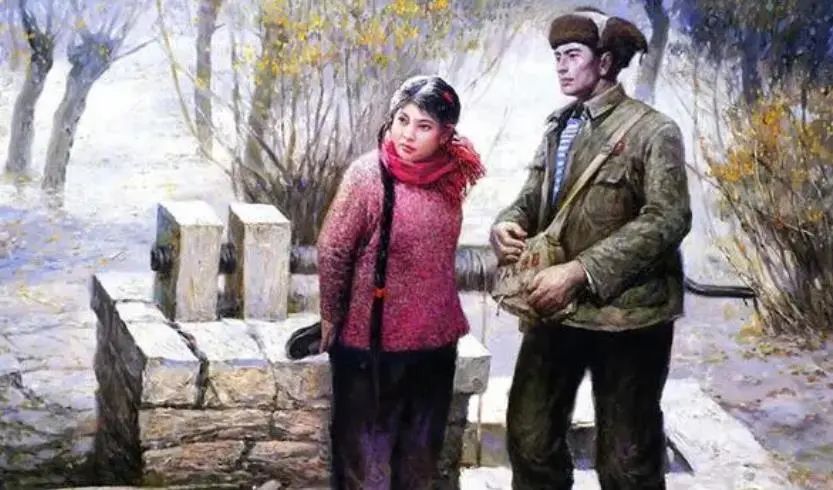 在吊杆式井口旁,出现了一个人影的坐姿,人们纷纷向井边跑去。坐在井口旁的正是秀娥,她显然是脚下一滑跌坐在那儿的,一只手还握着一只桶的桶梁,而另一只桶却滚在很远的地方。扁担被两只桶里泼出的水冻在地上了,秀娥也被冰冻在地上。她的鬓发和睫毛结了霜,看来她已被冻住在井口旁很久了。