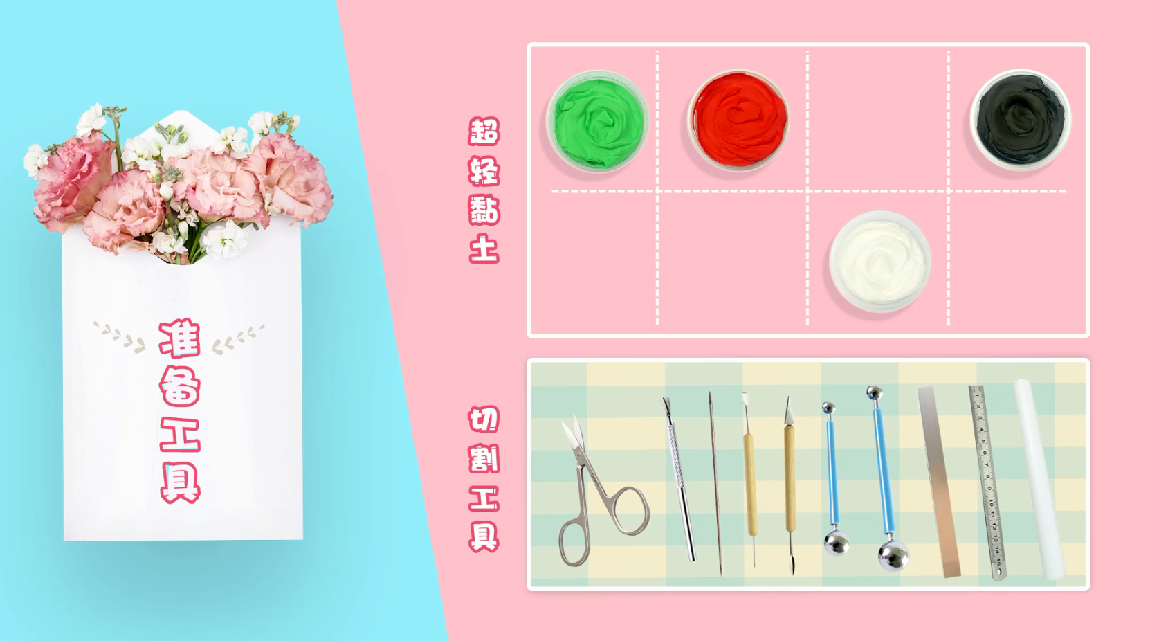 准备剪刀、直尺、小圆管、小勺等工具