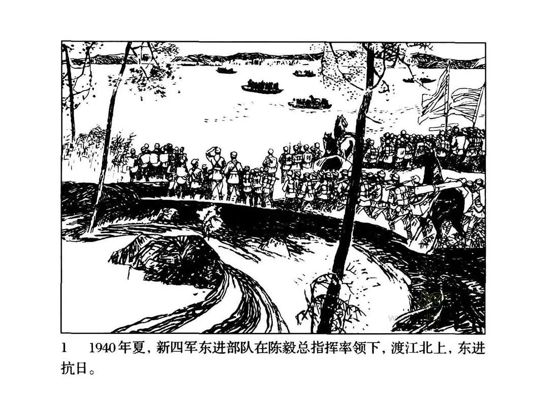 1940年夏,我新四军三个纵队在陈毅的率领下渡江北上,开辟敌后抗日根据地,途中遭到国民党反动派的阻挠和袭击。陈毅根据党的统一战线政策,采取争取友军、孤立顽固派的方针,终于突破反动派的重重障碍,胜利完成东进抗日的任务。