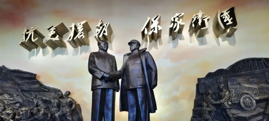 1950年10月,美军不顾中国政府一再警告,悍然越过三八线,把战火烧到中朝边境。在朝鲜人民处于极端困难、中国安全受到严重威胁的情况下,中共中央和毛主席根据朝鲜劳动党和政府的请求,以及中国人民的意愿,做出“抗美援朝、保家卫国”的决策,组成中国人民志愿军,高举爱国主义、国际主义和革命英雄主义旗帜,开赴朝鲜战场,同朝鲜军民并肩抗击侵略者。