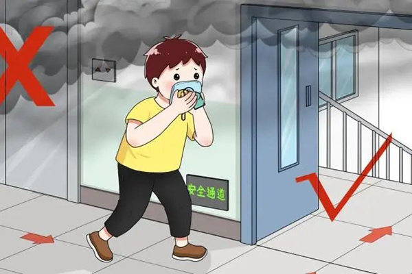 2. 穿过浓烟逃生时,要尽量使身体贴近地面,并用湿毛巾捂住口鼻。