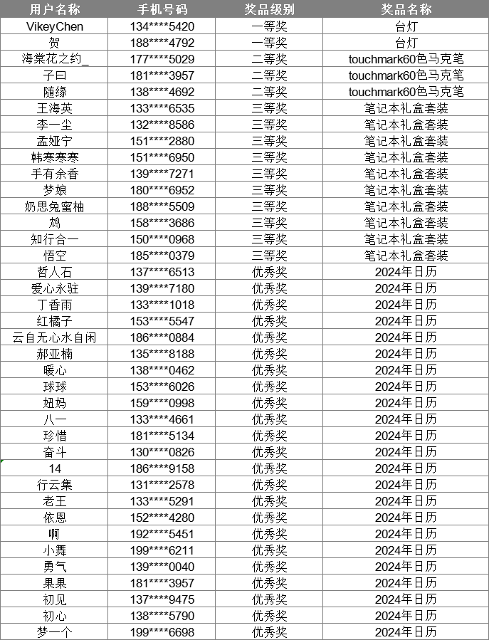 优秀奖:2024年日历(样式随机)