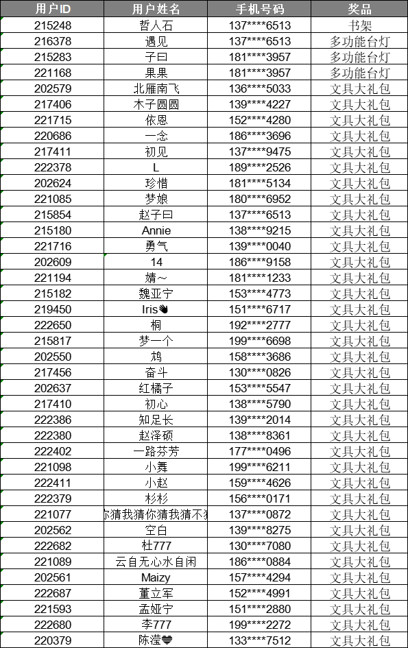 三等奖:文具大礼包(颜色随机)