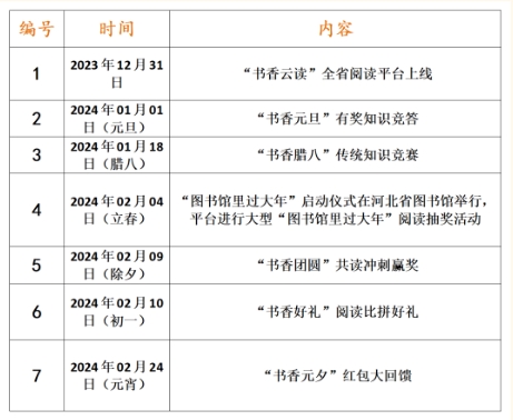 “图书馆里过大年”主题活动是河北省文化和旅游厅举办的“这么近,那么美,周末到河北——冬游河北过大年”活动十大场景之一。河北省图书馆作为活动主场,为引领“省、市、县、乡、村”五级联动,全省同庆“图书馆里过大年”,会同省内各级地方公共图书馆,打造了“书香云读”全省阅读平台,围绕传统节日为全省人民带来各种阅读活动,读好书、得大奖,欢迎您持续关注,坚持阅读,带领全家一起品书香、过大年。