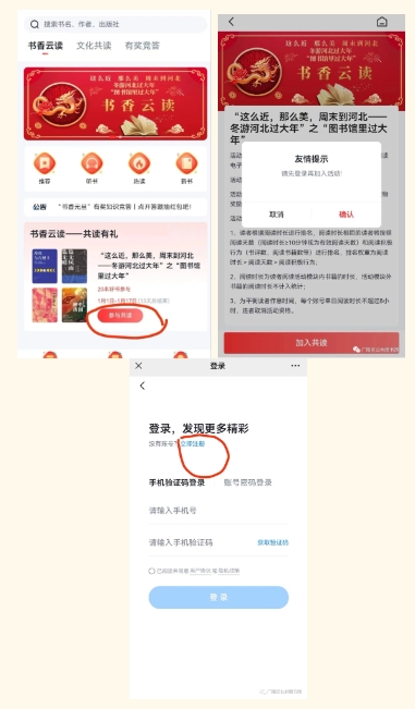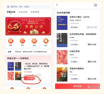 手机快速注册完成后,再次点击“参与共读”,选书后即可参与共读,后续按照时间节点安排,参加相关有奖活动。