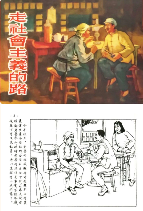 连环画《走社会主义的路》讲述了土地改革后,范庄农民鲁广财生活渐渐富裕,希望把日子过得更好,决定拥护集体化、放弃资本主义道路的故事。