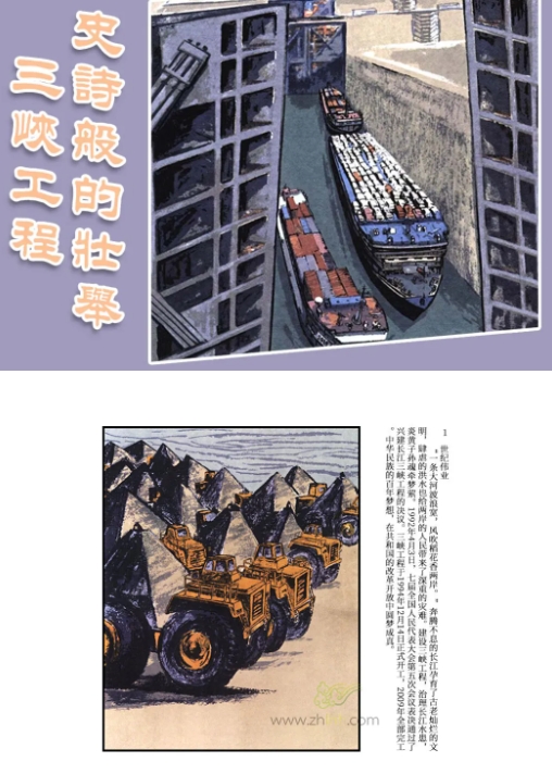 连环画《三峡工程,史诗般的壮举》用精美的图文演绎了三峡工程的雄伟风采,点明了三峡工程对于祖国建设的重要性。