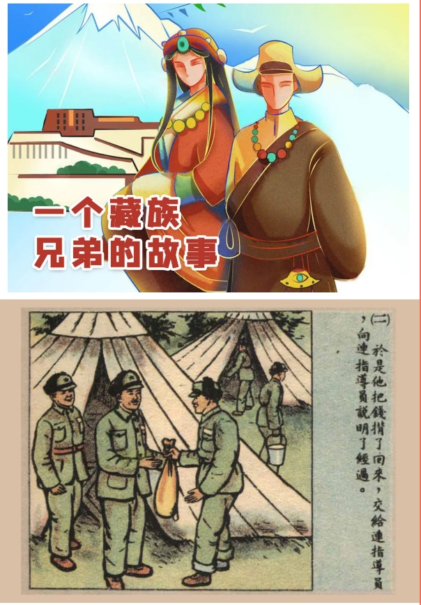 连环画《一个藏族兄弟的故事》讲述了一位普通藏族青年和进藏人民军队之间结下深厚情谊的故事,体现了藏族同胞对党和中央政府的热烈拥护。
