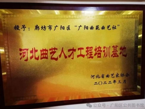 广阳曲苑曲艺社成立以来,以传承曲艺艺术为宗旨,培训曲艺爱好者,每周五晚上进行展演,师生同台,教学相长,成为一个曲艺传承阵地,被河北省曲艺家协会授予“河北省曲艺人才工程培训基地”。