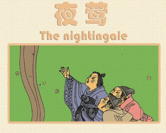 连环画《夜莺》取材于丹麦童话作家安徒生唯一一篇以中国为背景的童话故事。夜莺以美丽的歌声打动了皇帝,成了皇帝的宠儿。但不久之后,一只能发出曼妙乐声、外表华丽的人造小鸟获得了更多赞美。于是,夜莺飞走了。然而,当皇帝的生命面临死神的威胁时,人造小鸟却唱不出一个音符,是夜莺用婉转的歌声驱走了死亡的阴霾。