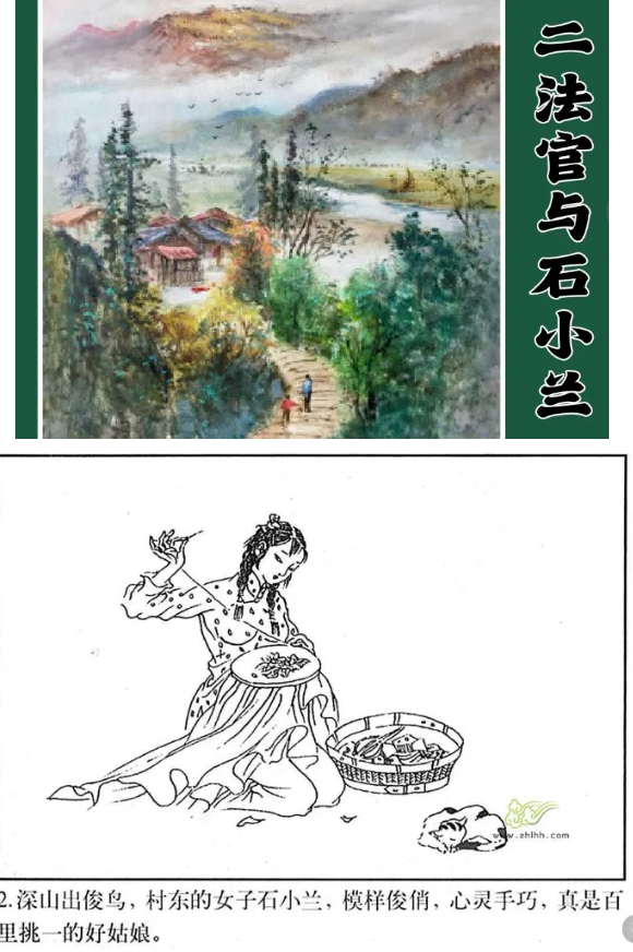 连环画《二法官与石小兰》讲述了农村青年石二法和石小兰自由恋爱的故事。同村的“三愣子”看上了石小兰,妄图以散播流言的方式逼迫石小兰与自己结合。石二法拿起法律武器,用记在小本子上的法律知识捍卫自己和石小兰的权利。他走出大山,走出镇子,最终在大城镇里寻求到了法律的公正。“三愣子”终于得到了应有的惩罚。