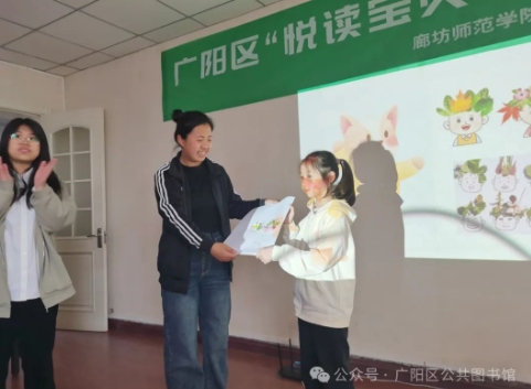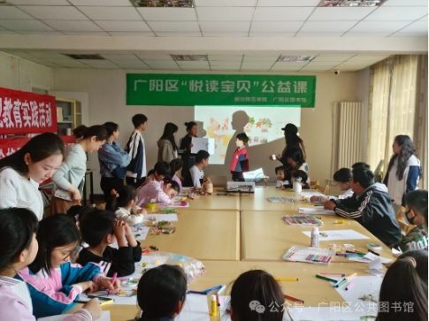 为了更好地开展少年儿童阅读推广服务,我馆联合廊坊师范学院共建实践基地,与廊坊三小共同联手,由廊坊师范学院志愿者学生在广阳区图书馆举办“悦读宝贝”公益课。