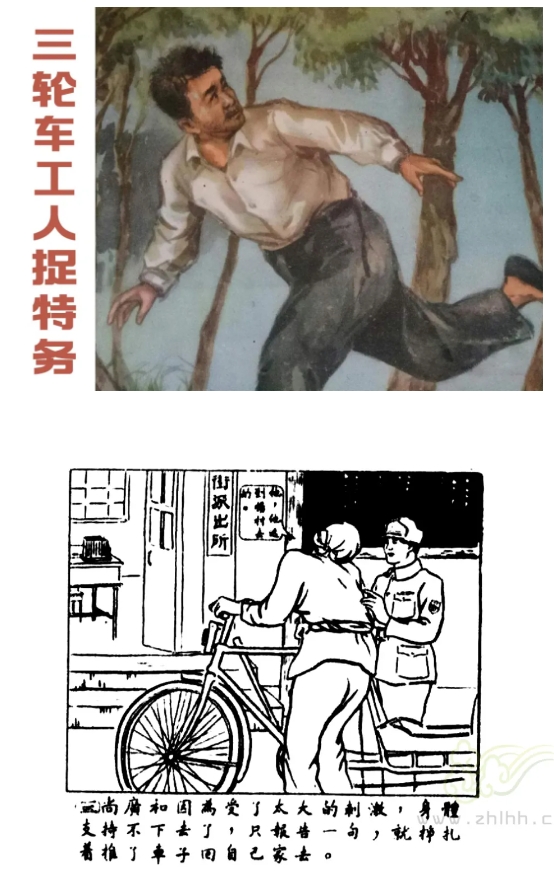 连环画《三轮车工人捉特务》讲述了天津一位三轮车工人协助警察抓获在逃地主恶霸的故事。