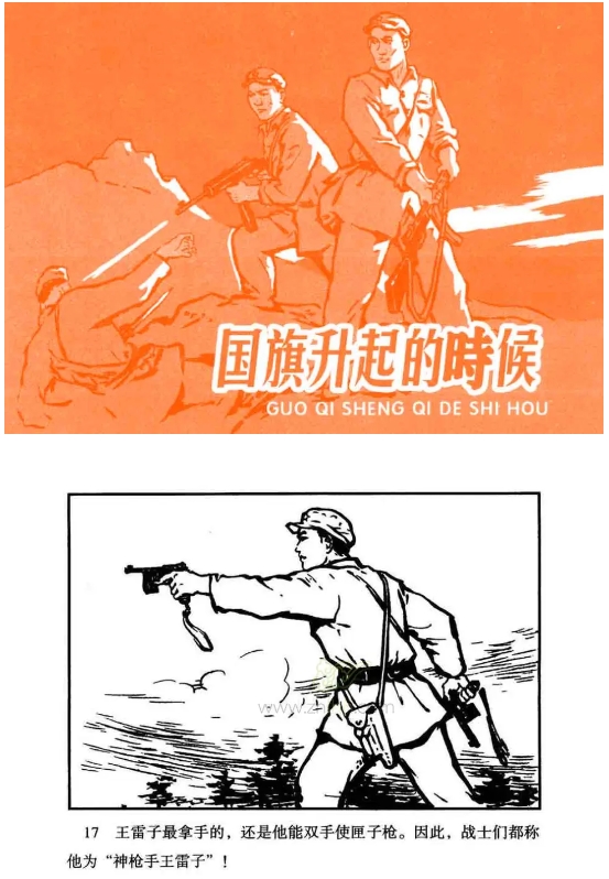 连环画《国旗升起的时候》讲述了边防战士们冲破敌人的重重封锁,将国旗按时送达目的地的故事,生动地表现出人民解放军热爱祖国、英勇斗争的高贵品质。