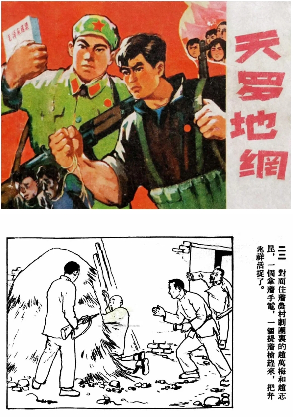 连环画《天罗地网》描绘了福建前线军民团结智斗空投美蒋特务,将其全部抓获的战斗故事。