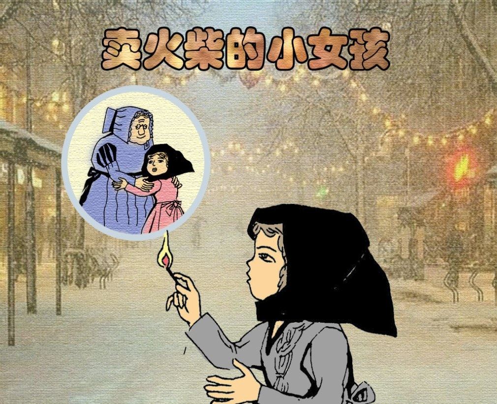 一个乖巧、美丽的卖火柴的小女孩,在饥饿、寒冷、孤独中擦燃了一根根火柴,最后在火光中,在幻想中微笑着冻死在街头。故事揭露了资本主义社会的罪恶,表达了对小女孩不幸遭遇的深切同情。