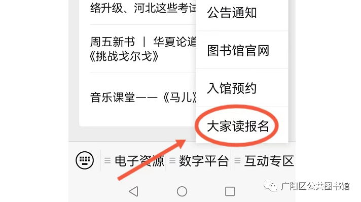 1.关注并登录“广阳区公共图书馆”微信公众号;