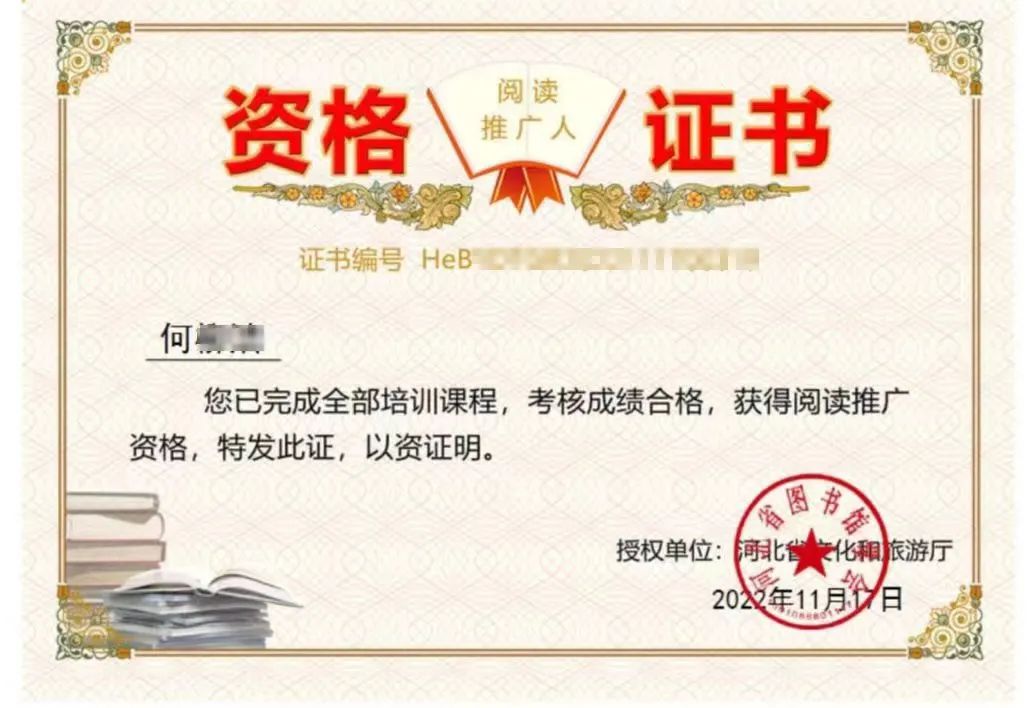 请参与阅读推广人培育计划及阅读推广活动案例比赛的志愿者自行尽快完成培训课程视频的学习,并通过线上测试(时间有限,请大家从速完成)。省文化和旅游厅对通过测试的志愿者授予“河北省阅读推广人”称号并颁发电子证书。