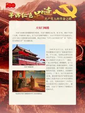 今年是中国共产党建党百年,本展览将通过寻访共产党人留下的红色足迹,回顾共产党人的革命历程:从北京五四运动到巴黎、日本、俄国等地的中国共产党早期组织建立,到中共一大在上海召开,再到井冈山会师、瑞金中华苏维埃共和国临时中央政府的诞生、遵义会议召开、延安革命根据地的建立,这些红色足迹永载史册、历久弥新,激励着一代代共产党人风雨无阻、砥砺前行。