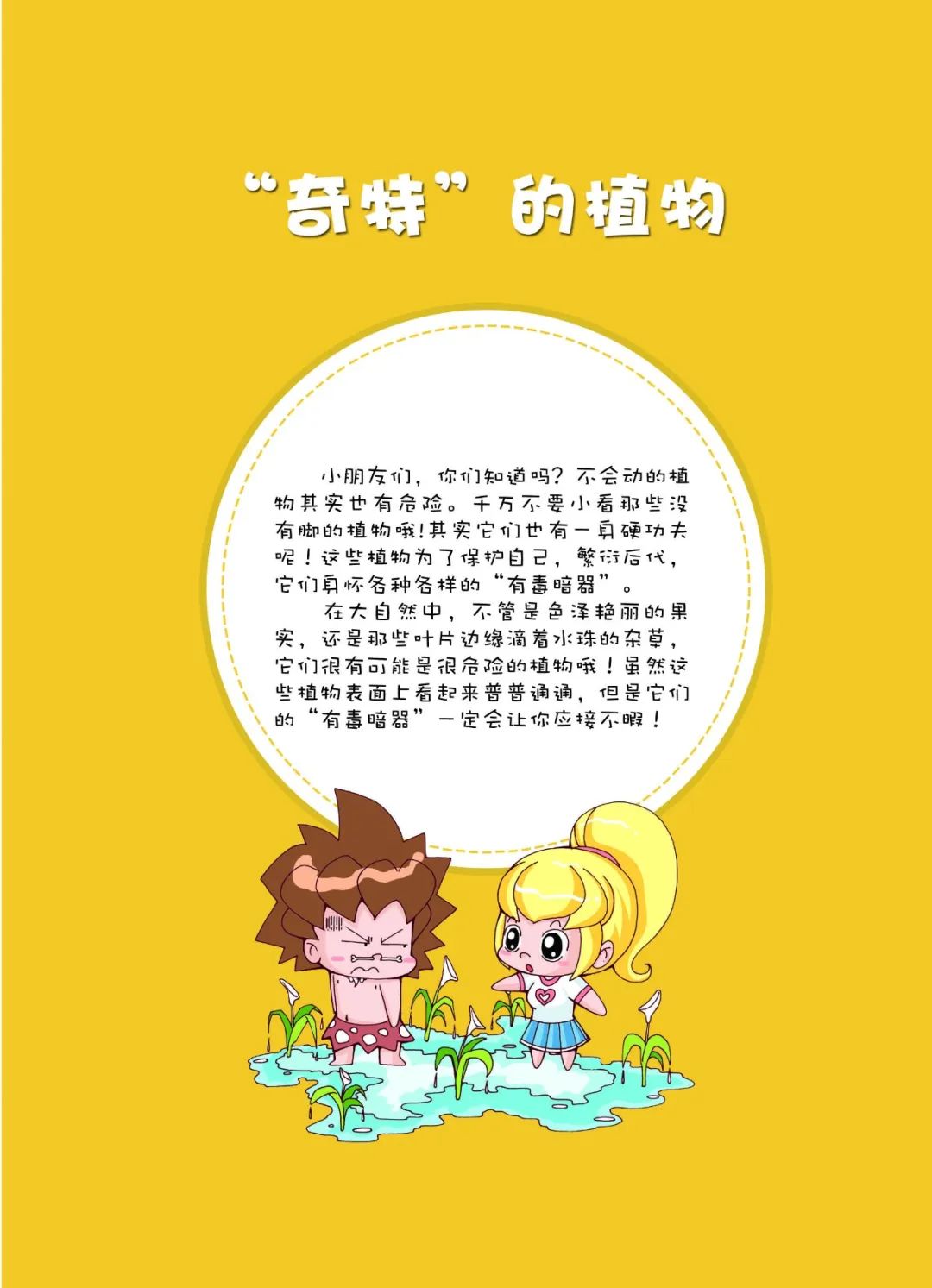 漫画从介绍植物的“毒性”开始,通过对于“夹竹桃”“水仙”“断肠草”等一系列植物的毒性描述,过渡到微生物的视角,在微生物的视角下又介绍了关于“细菌”“病毒”等生物。