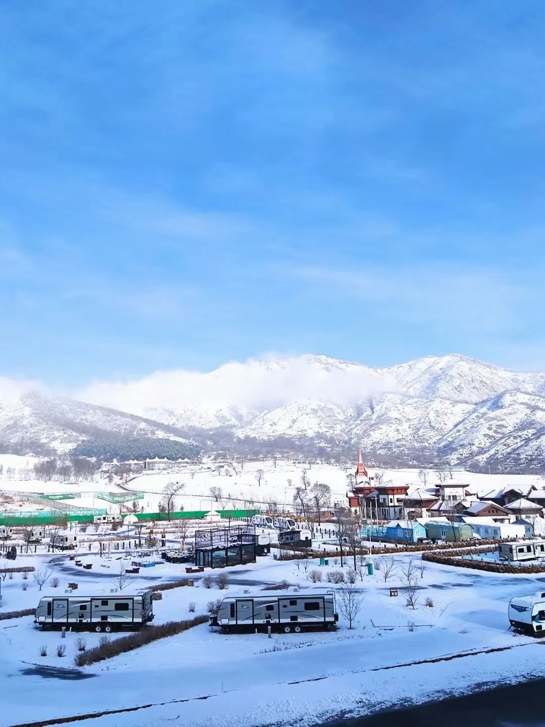 冬日,整个海坨山谷房车营地被大雪覆盖,美得好像冰雪童话里的场景。一车一家的私属庭院,让人真真切切体验一次“冬日房车生活”。