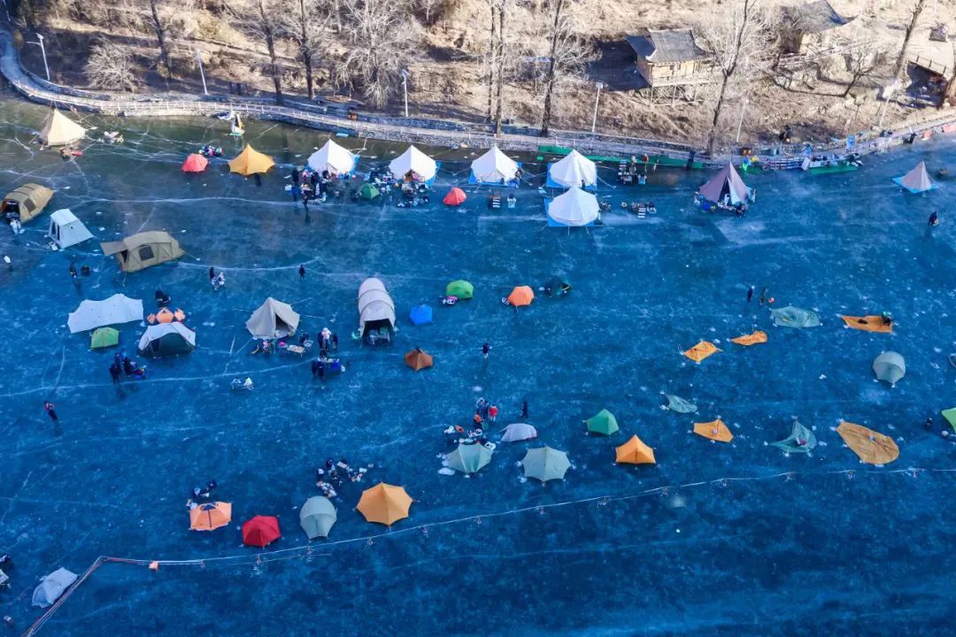 海坨山谷的天鹅湖,是冬钓爱好者的乐园,伫立在如镜的冰面上,抖动手中的短杆,屏气凝神,静待鱼儿上钩,看着它出水的一刹那,成功和喜悦在心中激荡。