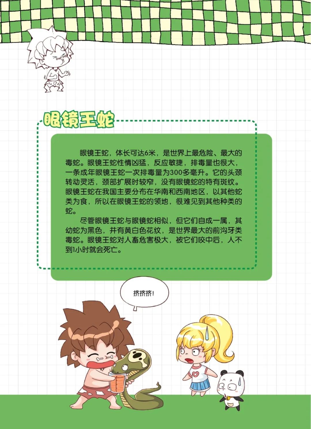 首先是主角团一行人参观动物园,为我们引出了世界最毒蛇之一的眼镜蛇,它因背部花纹形似眼镜而得名,人类被咬后不到一小时就会身亡。