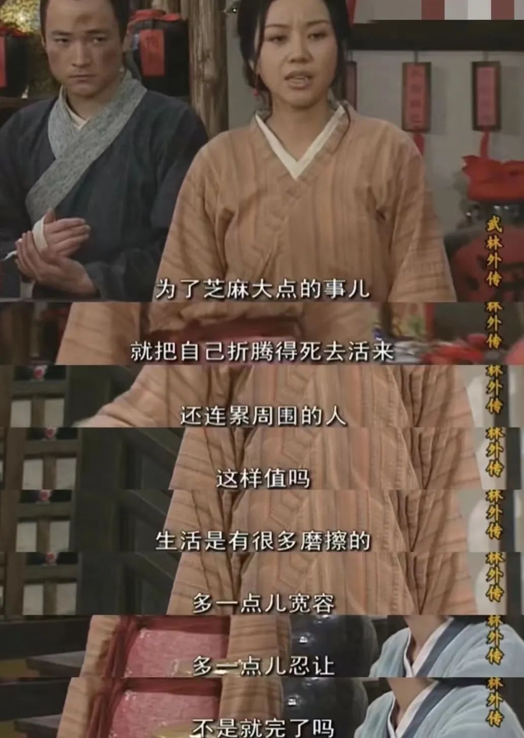 《武林外传》为什么不过时呢?一位网友说,“你觉得身在江湖,但又鸡毛蒜皮,你觉得身在市井,却有刀光剑影,你问江湖在哪里时,其实已身在江湖。这群人没有极强的武功,但无论客栈风浪再大,他们总会跟你齐心协力克服万难,这才是最令人动容的地方。”