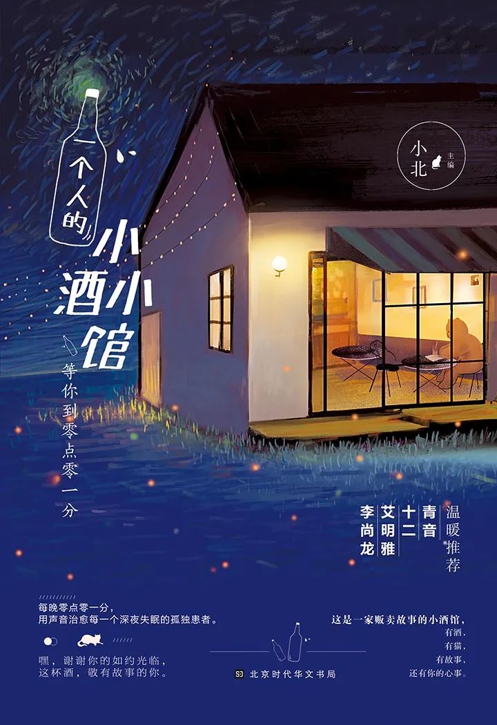 小北主编,北京时代华文书局本周的最后一本书,来自一家贩卖故事的“小酒馆”,有酒有猫有故事,每晚零点零一分,用声音治愈每一个深夜失眠的孤独患者。掌柜的小北一直想去云南大理开一家属于自己的客栈,而一个人的小小酒馆,就是这家客栈的线上总店。她还请来了4位男友守夜人,分别在每周一三五日的深夜零点零一分准时暖心上线。那些爱里的小心事、成长里的小困惑,你都能在酒馆的故事里找到心灵共振。故事每天真实地发生着,酒馆也在安静地陪伴着。翻开这本书,在这个周末的夜里,与你一起小酌一杯。长按识别在线阅读