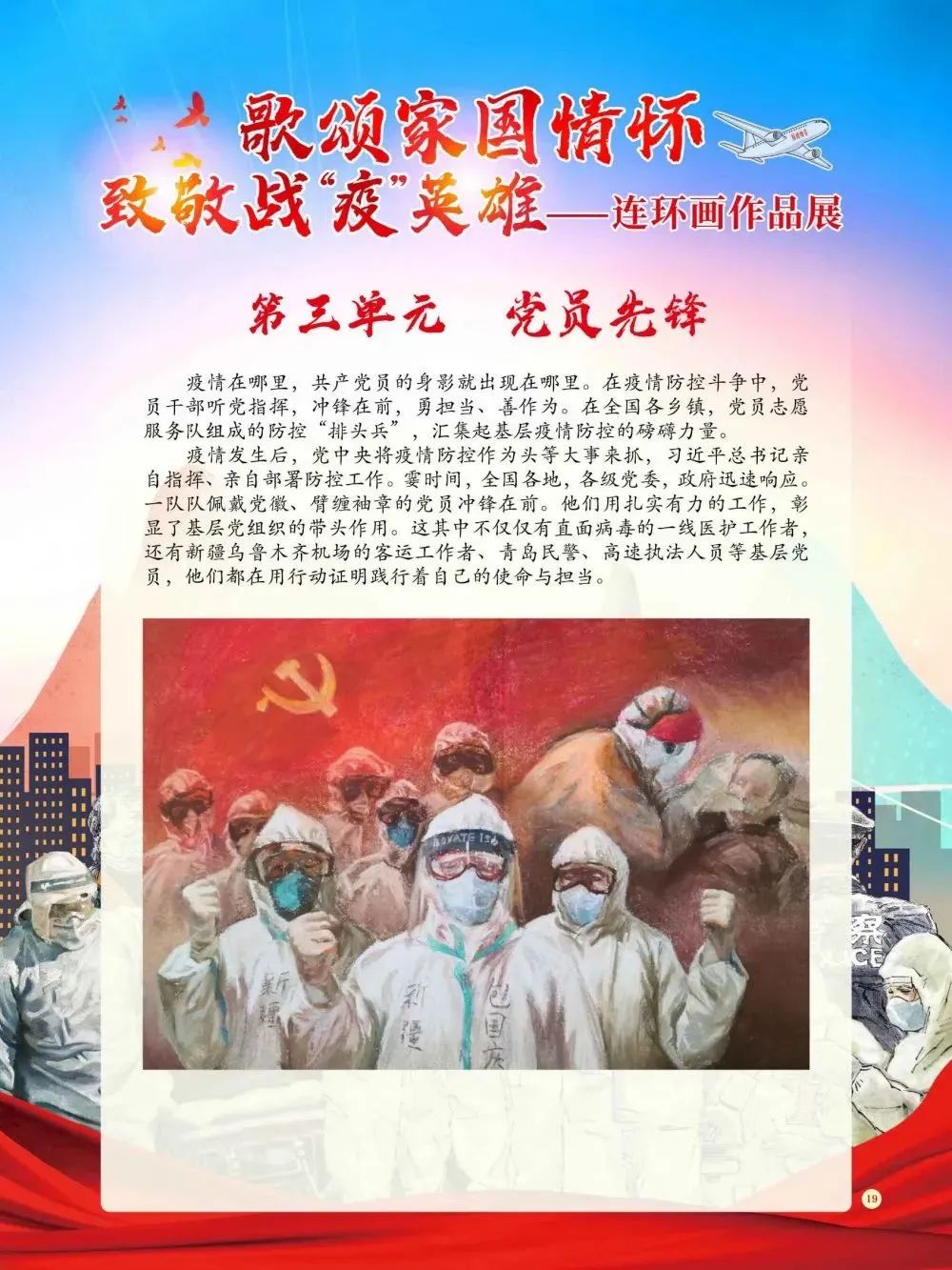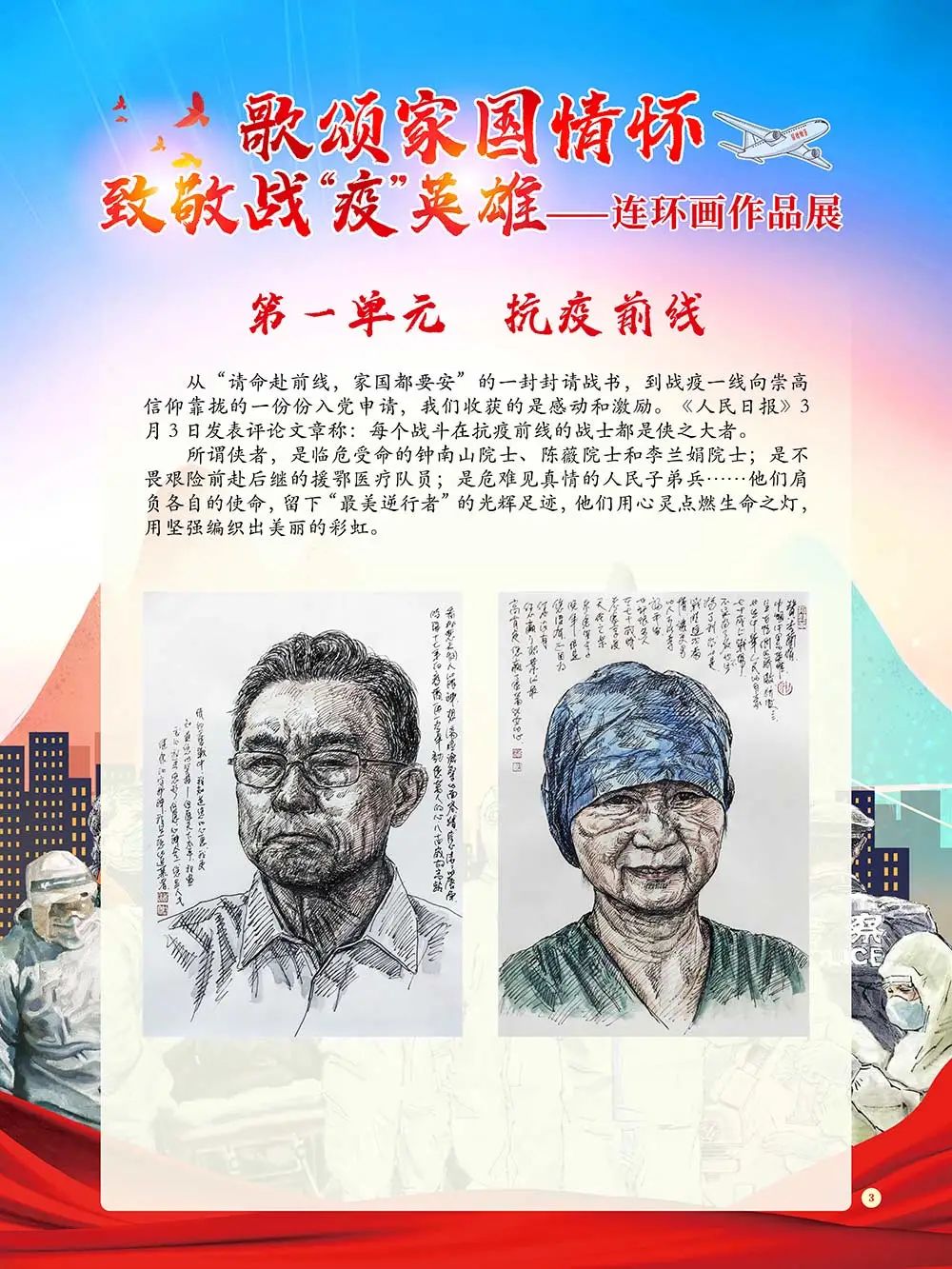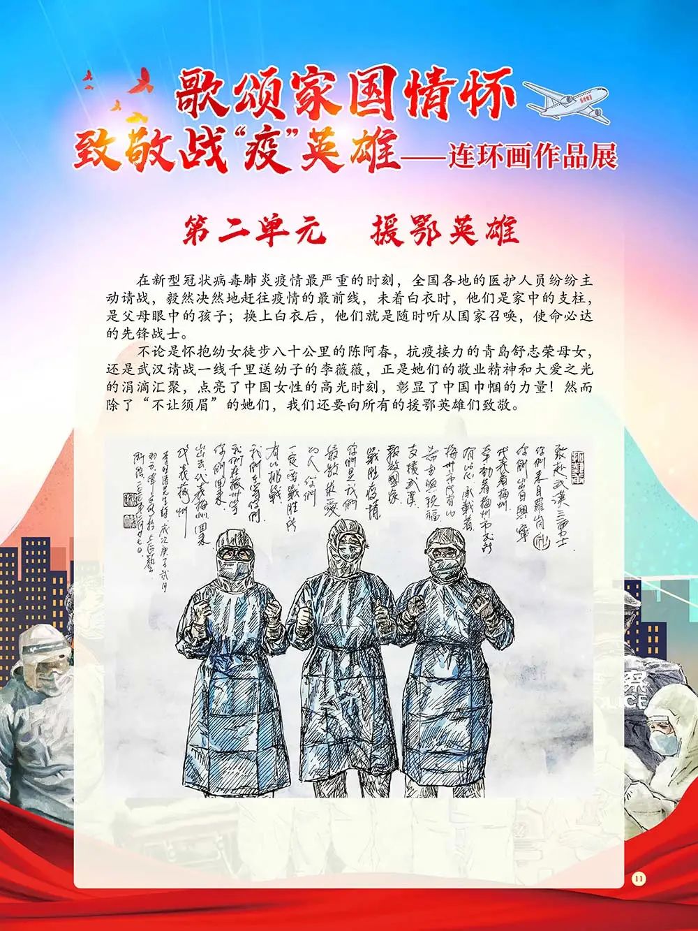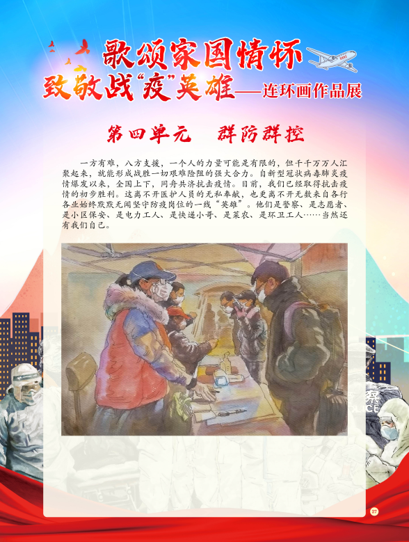 《歌颂家国情怀 致敬战“疫”英雄——连环画作品展》将通过“抗疫前线”、“援鄂英雄”、“党员先锋”、“群防群控”四个部分为您讲述那些或平凡、或伟大的抗“疫”故事。