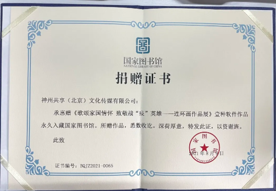 2021年8月《歌颂家国情怀,致敬战“疫”英雄——连环画作品展》凭借其蕴含的中国精神、时代价值和人文情怀,入选国家图书馆中国战“疫”记忆库项目,被国家图书馆永久收藏。